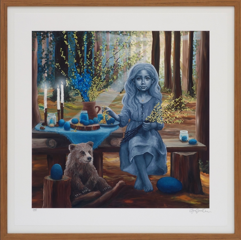 Anne Juul Christophersen lives far out in the countryside in Southern Jutland, and in this desolate, harsh landscape, she feels at home. Perhaps this is also why her works often depict the girl and her bear, who constantly explore the raw and open wilderness, just the two of them, alone with each other and nature.